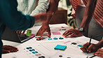 Hands, cellphone and man in office with networking, communication or social contact with chatting. Technology, connectivity and male journalist with internet search or texting with phone in workplace - Stock Photo