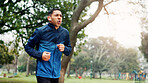 Stock Photo - Back, fitness and athlete with arm stretching outdoor for workout performance, muscle strength and wellness. Rain, person and start warm up at park for cardio exercise, sports training or preparation