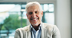 Businessman, portrait and fashion with confidence at office for corporate startup or development. Man, employee or smile with arms crossed in suit for career, job or business attire at workplace - Stock Photo