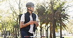 Business woman, think or park walk for inspiration, eco transformation idea or aesthetic planning. Landscape architect, consider outdoor layout or travel on path, sustainable design or conservation