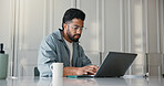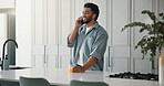 Stock Photo - Home, above and man on couch, smartphone and online reading with communication. Cellphone, relax and person with happiness, email notification and connection with internet, app and message to contact