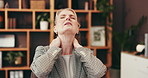Remote work, tablet and documents with woman in home office for virtual assistant, paperwork and networking. Feedback, administration and proposal schedule with person for information and research - Stock Photo
